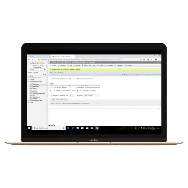 AMS-DB is developed in PHP MySQL database. AMS-DB is totally developed using Queries instead of UI options.